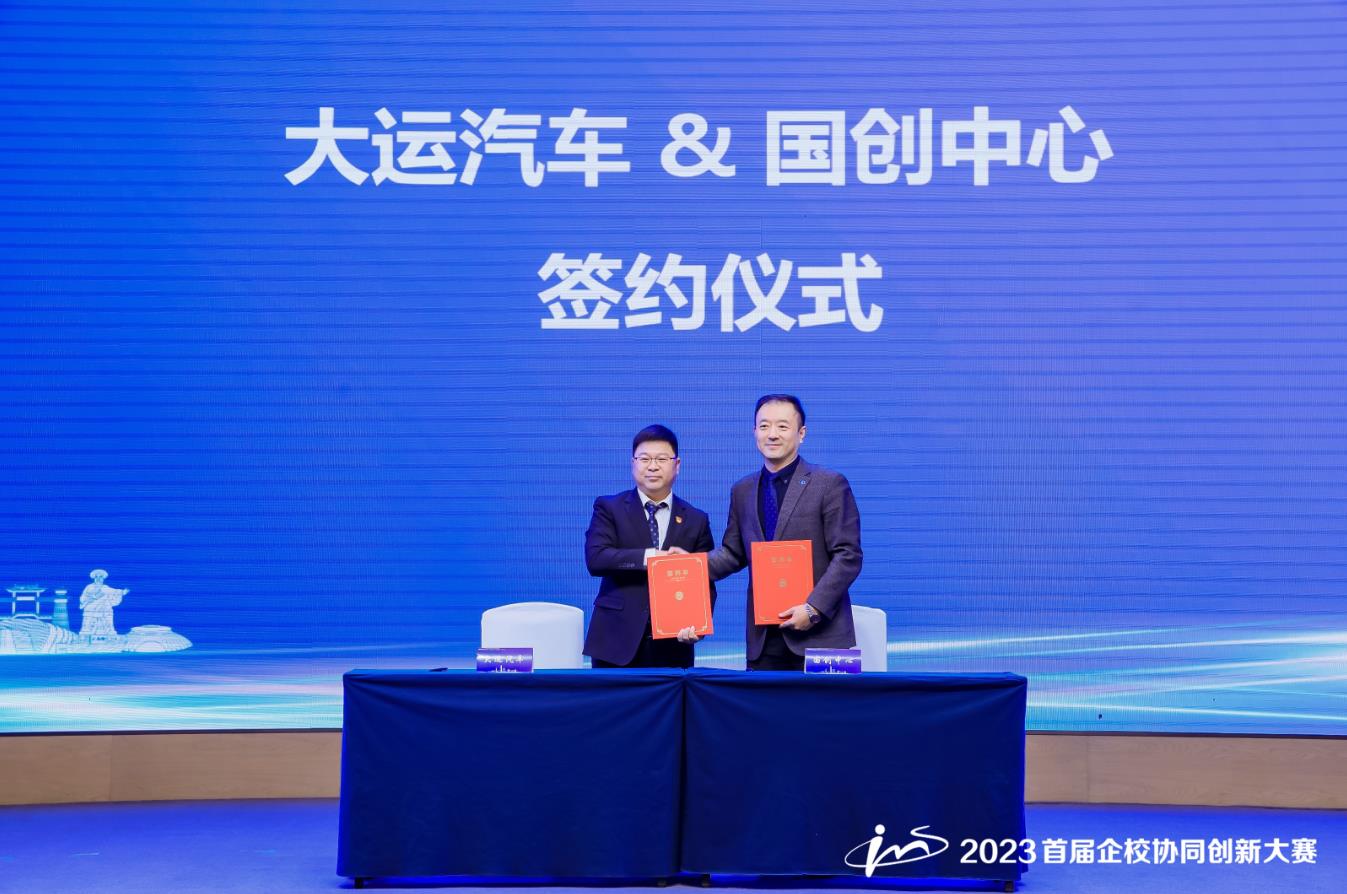 国创中心是由科技部批复设立,是一个聚焦国家重大需求,引领相关领域技术创新形成重大突破,坚持打造重大技术策源地、核心成果转化地和中小企业孵化地的国家级新能源汽车技术创新中心?;疃殖?,在政、产、学、研、资、创各界领导、嘉宾、参赛指导老师和学生代表等的见证下,大运汽车与国创中心举行了战略合作签约仪式。大运集团党委书记、副总经理郭进峰代表公司与国家新能源汽车技术创新中心副总经理田雨时签署了战略合作协议,标志着双方将充分利用各自的资源优势实现互利共赢合作。
