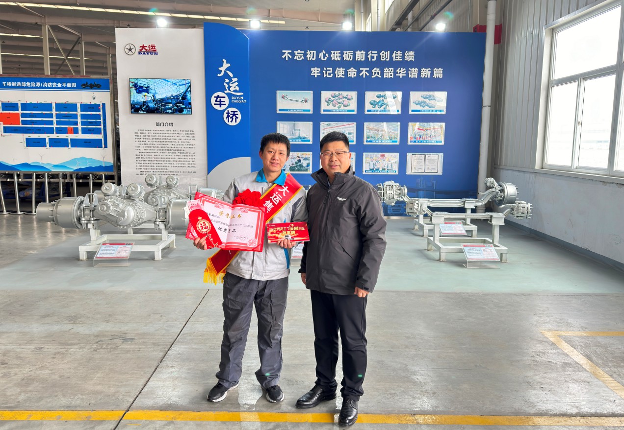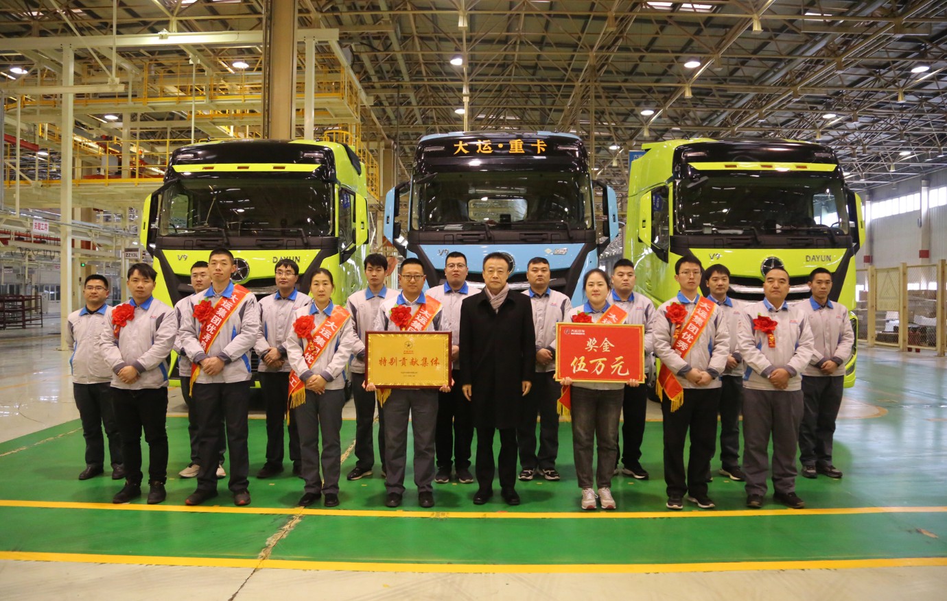 大运汽车重卡事业部总经理姜宇翔先后来到乘用车技术中心、重卡总装部、办公楼大厅为特别贡献集体和个人进行颁奖。“大家辛苦了!”“感谢大家的付出!”“提前祝大家新年快乐!”一句句亲切的问候承载着公司领导对一线员工的关怀。每到一处,姜宇翔总经理都与获奖集体与员工进行亲切交谈并送上节日祝福。在繁忙的生产和工作现场,他充分肯定了全体干部员工紧密围绕2023年公司经营目标和工作方针所做出的努力,对获奖集体和员工在2023年工作中的突出表现致以衷心的感谢和赞扬,并鼓励大家珍惜荣誉、再接再厉,钻研创新,新的一年认真贯彻公司各项部署,努力创造新成绩,做出新贡献,全力冲刺完成公司2024年度经营目标。